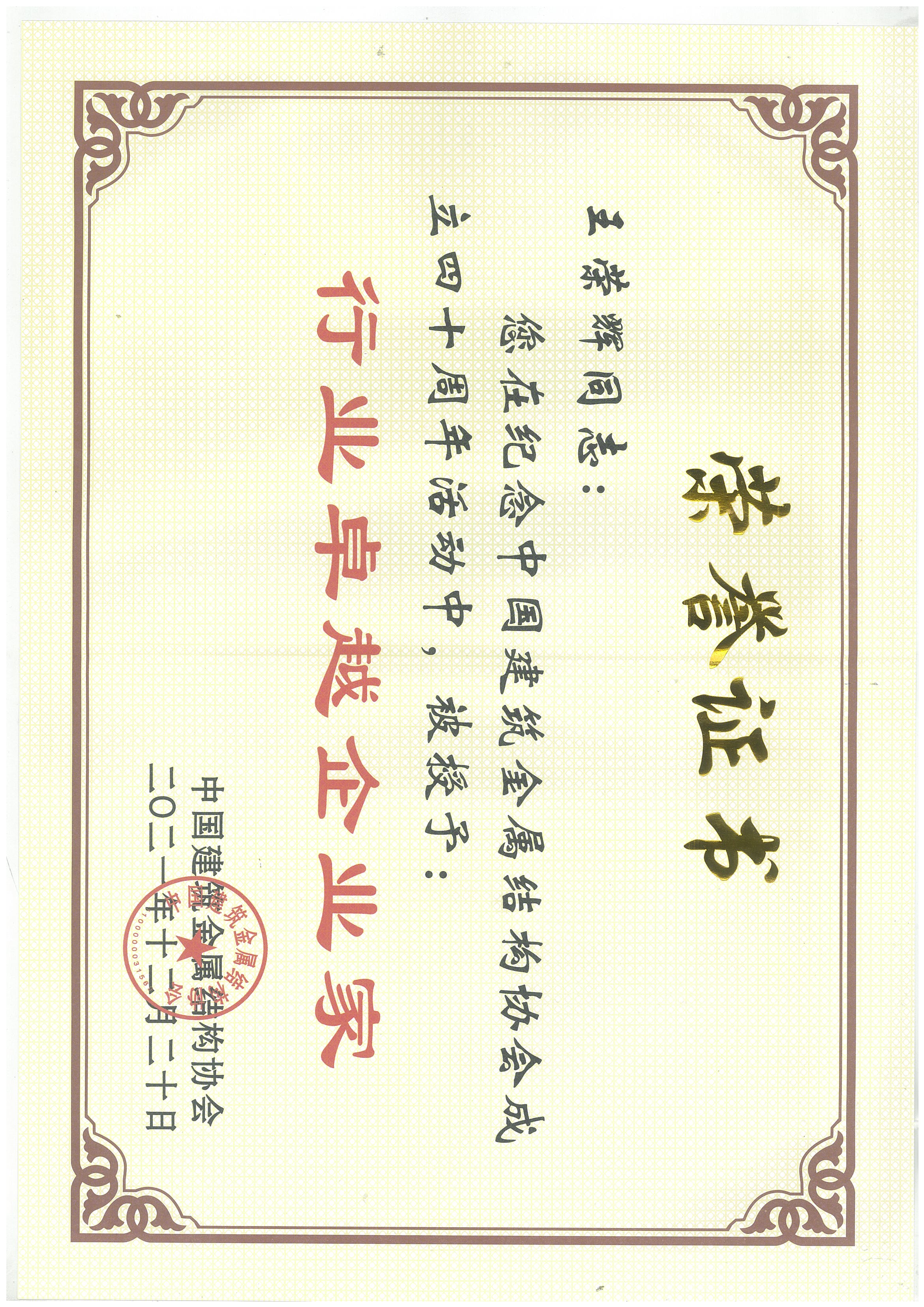 近日,中國建筑金屬結構協會召開了第十一屆理事會三次會議暨協會成立四十周年紀念大會。大會通報表彰了協會成立四十周年來在所轄各專業領域的會員中涌現出的一批積極奉獻、敢于擔當、勇于創新、業績突出的先進企業和優秀個人,他們為國家、為社會、為行業和協會的發展做出了重大貢獻。