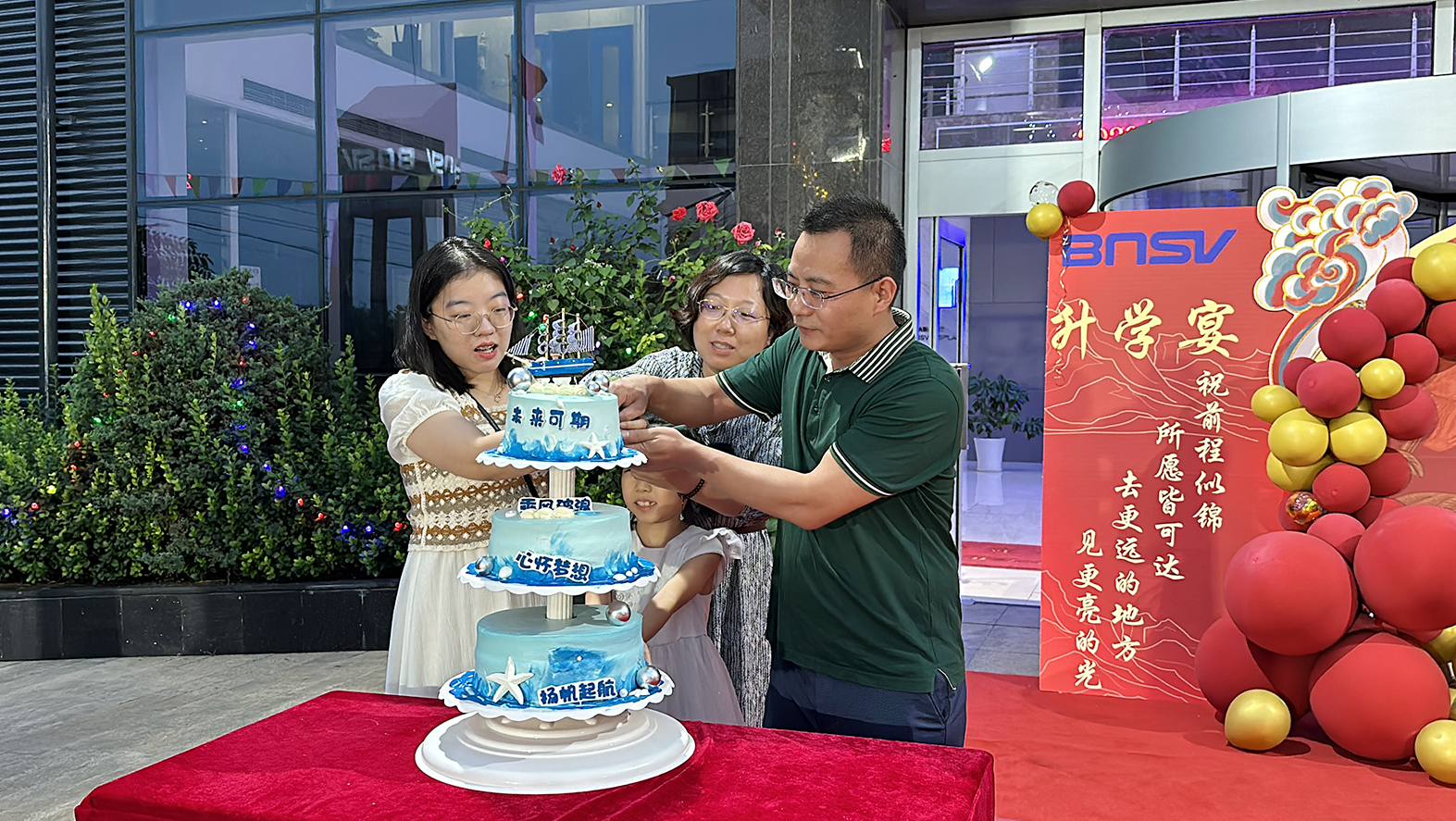 近日為了祝賀我公司三名員工洪炳達、裴娟娟、單朦的女兒洪采妮、魏暢、單雪雅,以優異的成績考取了理想的大學,特在公司廠區內舉辦盛大的升學宴,公司全體員工及孩子們的家人們共同為她們慶祝,分享一份金榜題名的喜悅,品嘗一份收獲成功的甘甜、保存一份溫馨難忘的記憶。