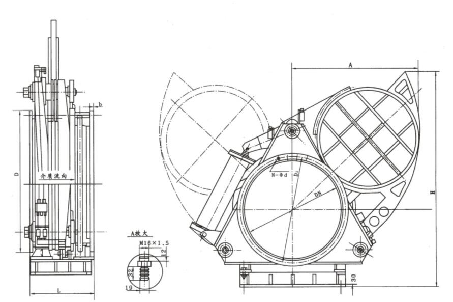 主要由左閥體、右閥體、絲桿、閘板、密封圈、杠桿、汽缸等零件組成,并由底座、支撐柱構成一個剛性結構體。閥門中設有夾緊、松開汽缸和翻板汽缸,夾緊、松開汽缸通過杠桿和絲桿螺旋驅動左、右閥體完成松開、夾緊動作,翻板汽缸驅動閘板完成開關動作。橡膠密封圈鑲鉗在閘板上,具有耐高溫、密封性能好、更換方便、使用壽命長等特點。