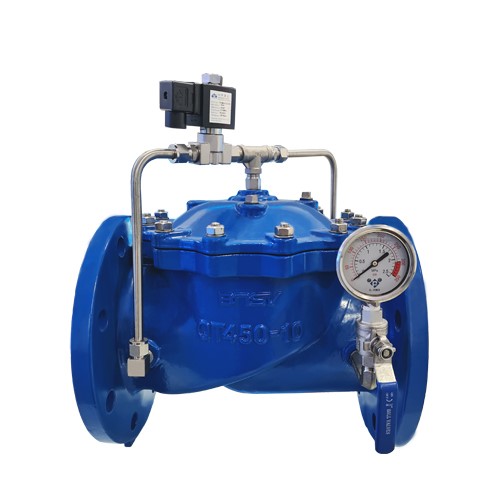 由主閥、電磁導閥、針閥、球閥、微型過濾器和壓力表組成水力控制接管系統。通過電磁導閥可以實現對閥門開啟和關閉的遙控。加裝附加裝置后,可控制開啟和關閉的速度。水力電動控閥利用導閥控制閥門的開啟和關閉,節省能源??纱嫫渌y門大型電動裝置。電磁水力控制閥產品廣泛用于高層建筑、生活區等供水管網系統及城市供水工程。